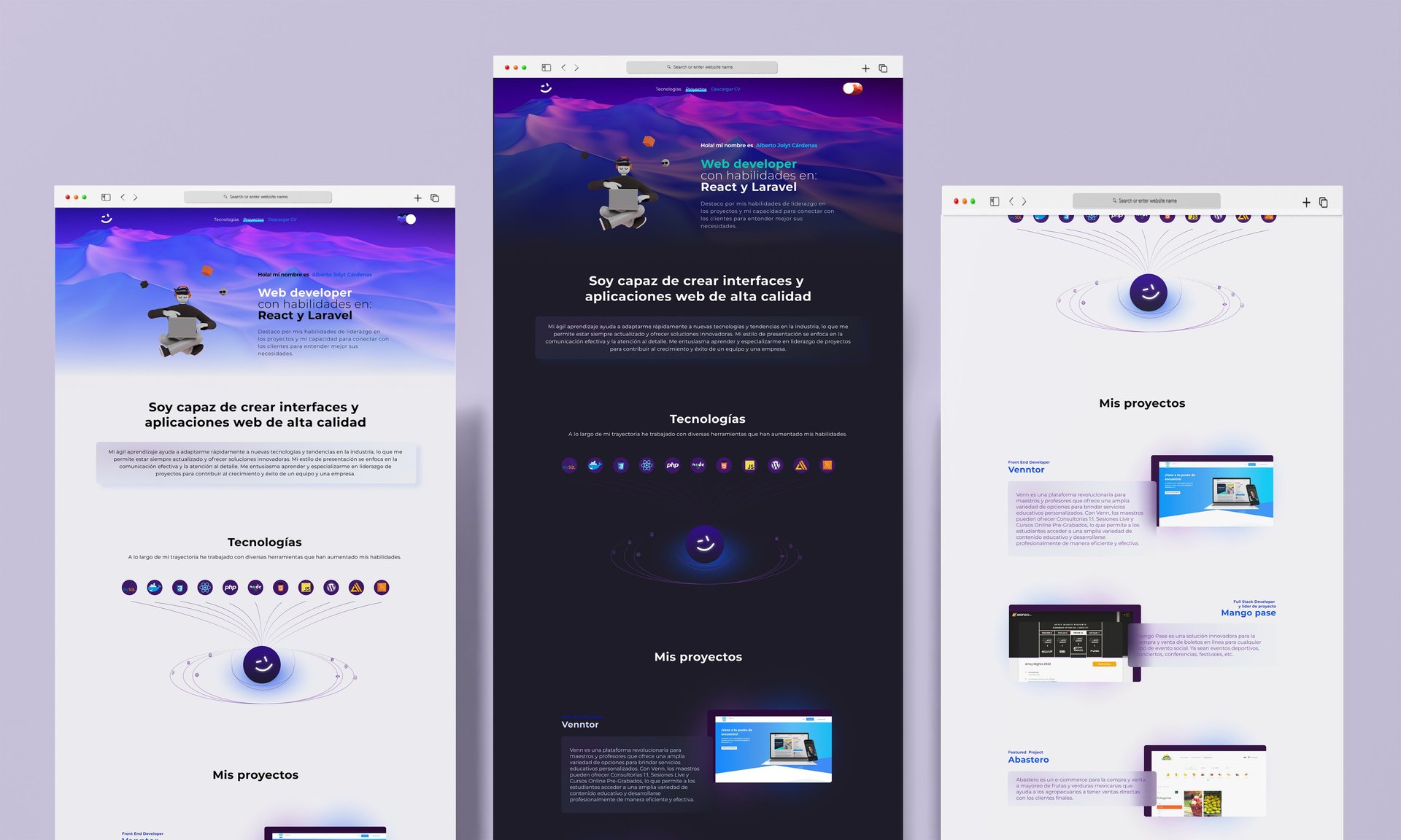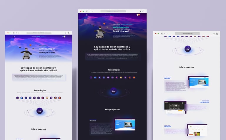 El desarrollador compartió ejemplos de portafolios que le resultaban atractivos, así como la información que deseaba comunicar en su sitio. Esto permitió establecer una dirección visual clara desde el inicio.